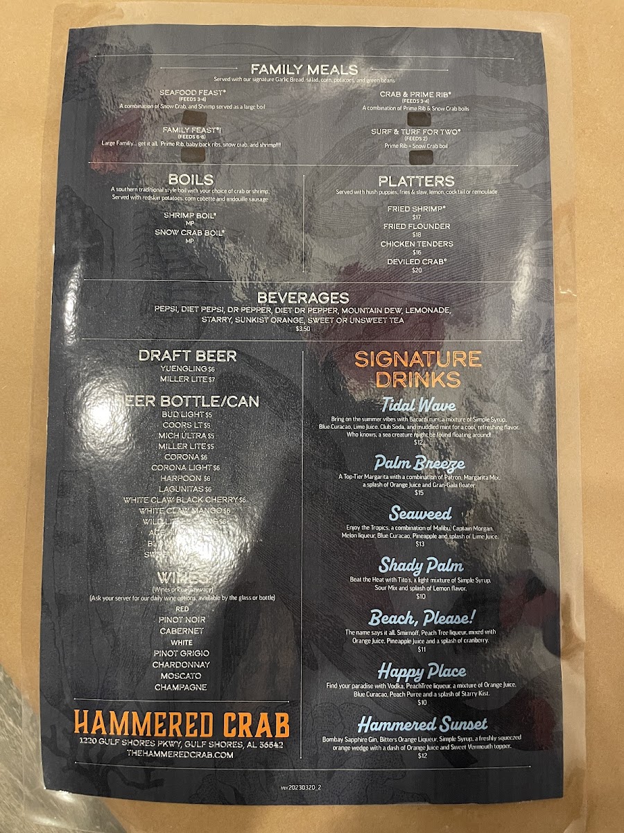 Welcome to Hammered Crab, a must-visit seafood destination located at 1220 Gulf Shores Pkwy, Gulf Shores, AL. This vibrant eatery shines with its delectable crab offerings and friendly service. Guests rave about the all-you-can-eat crab legs, praised for their suculent flavor and perfect cooking. Kristen Norton describes her snow crab leg bucket as “amazing,” complemented by buttery potatoes and corn, ensuring a satisfying feast.